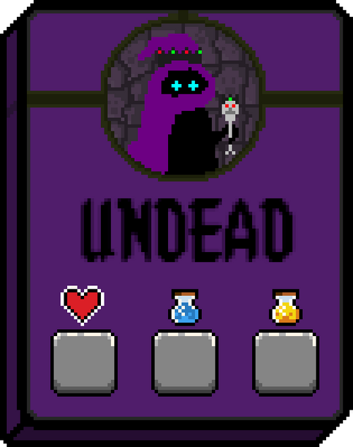 — DARK HEAL: Heals another undead card for 2 health but if there are no undead cards to heal, try and heal another card that is not undead for 1 health. cost 1 mana.